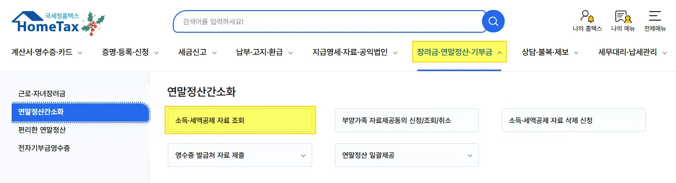 1) 홈택스 - 부양가족 자료제공 동의 후 부양가족의 간소화 자료를 함께 조회하여 제출하거나