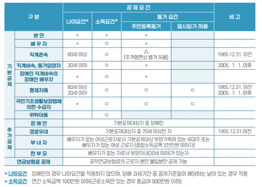 1. 기본공제 대상자는 모든 요건을 충족해야 합니다.